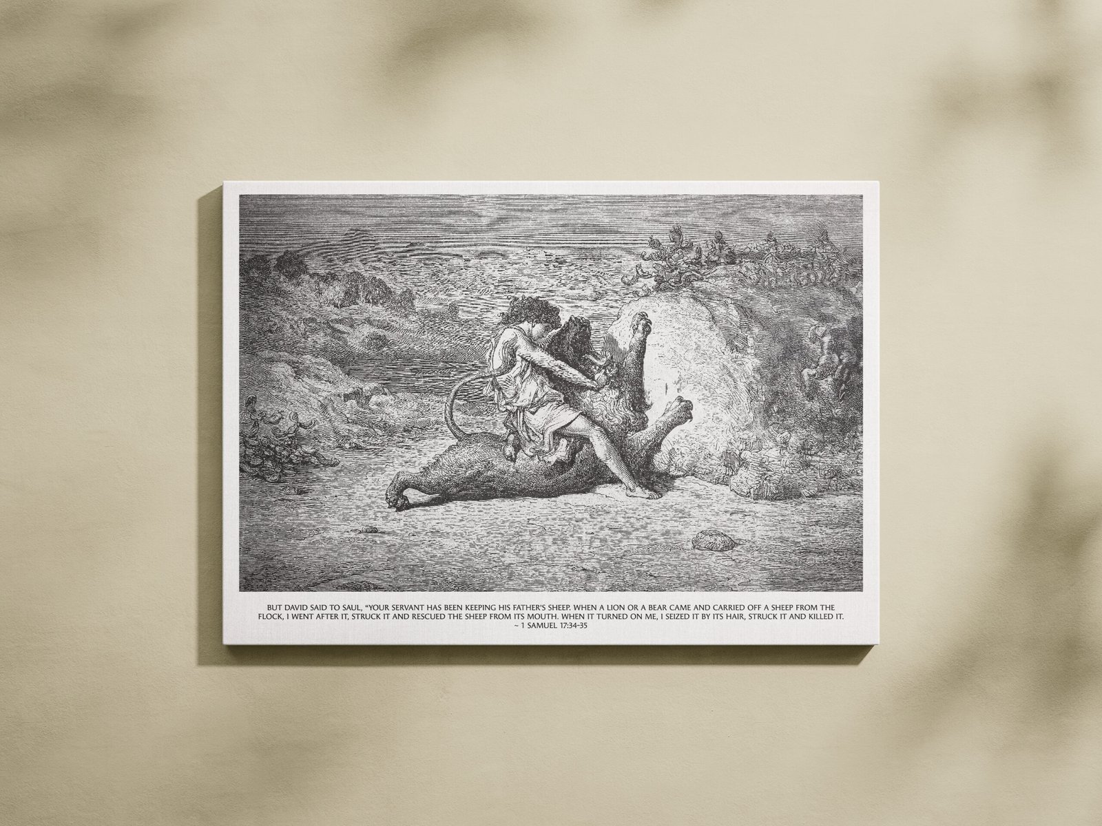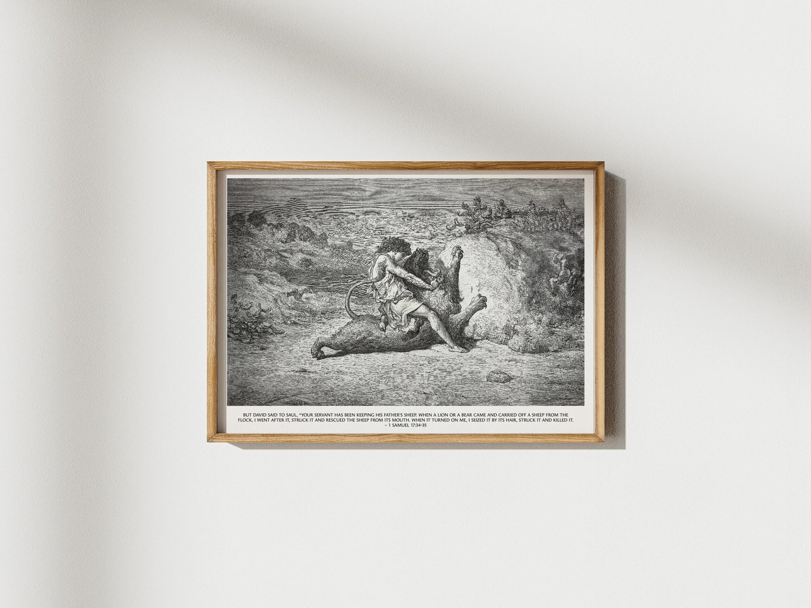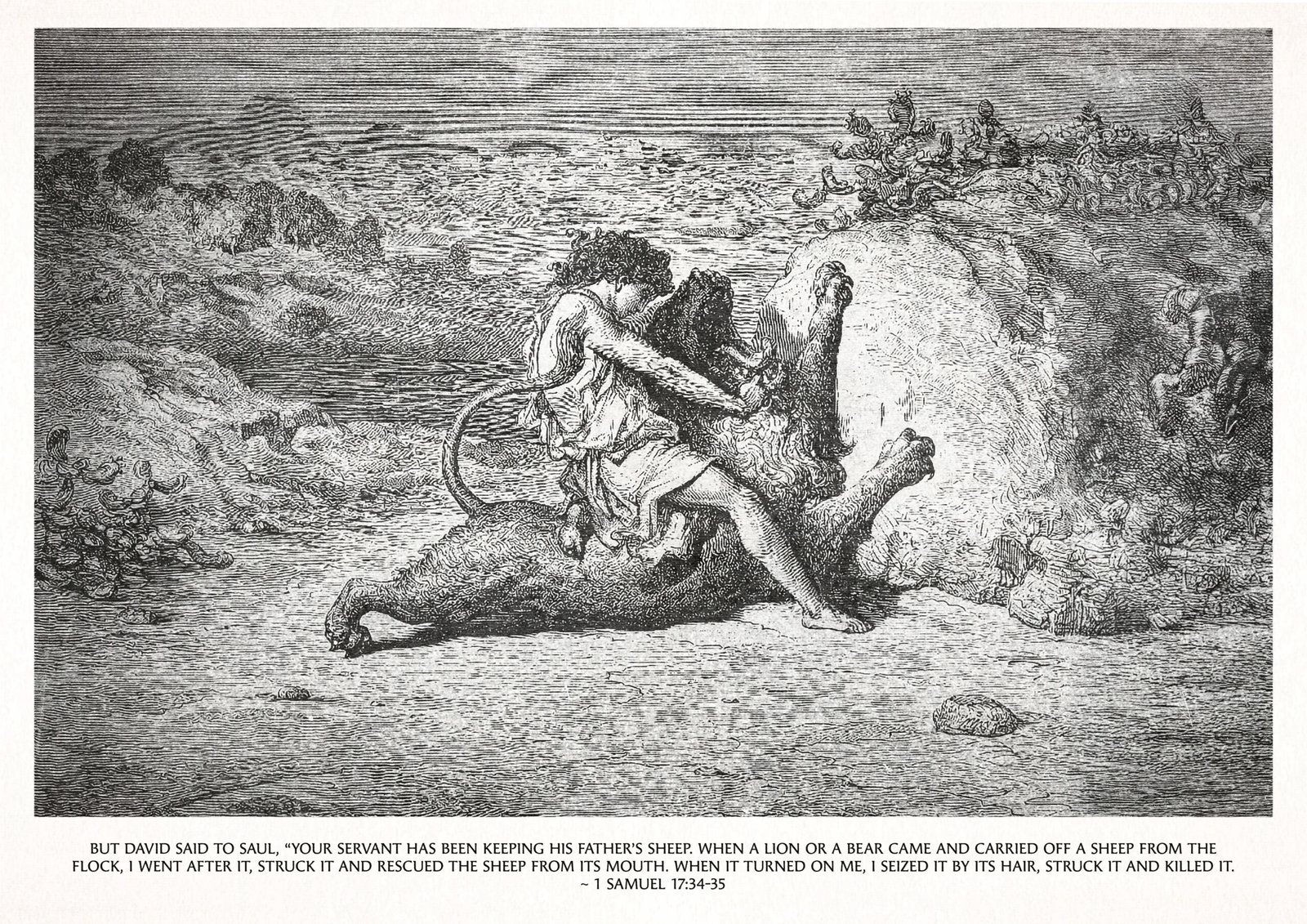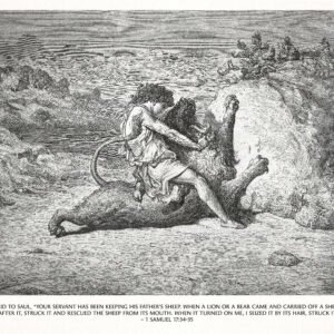 David Slaying Lion Print: Gustave Doré Etching Biblical Art Christian Wall Art (Digital Download)