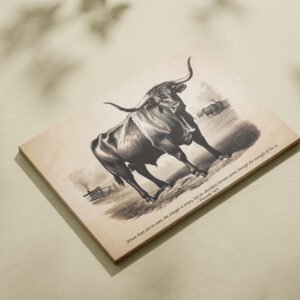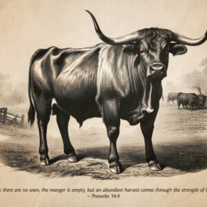 Proverbs 14:4 Vintage Oxen Sketch Christian Wall Art “Strength of an Ox” Digital Art Print Farmhouse Wall Art Rustic Christian Decor
