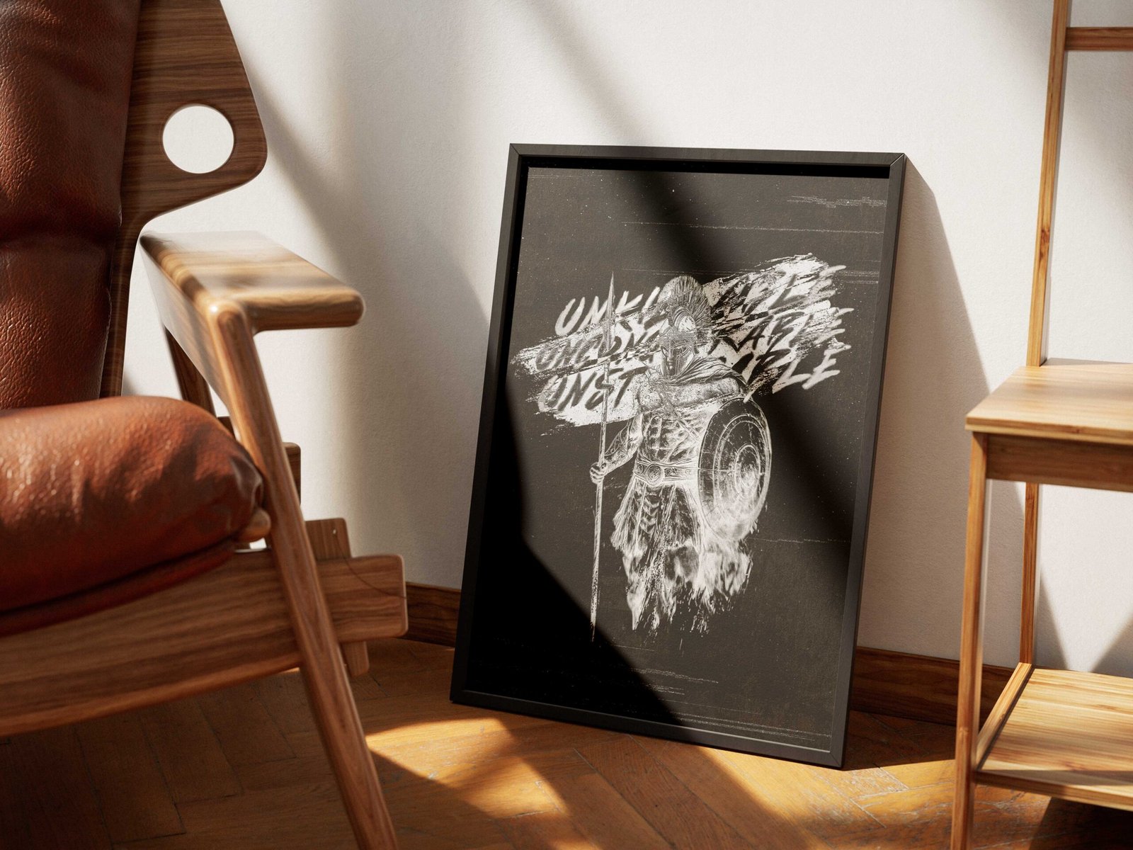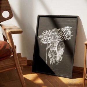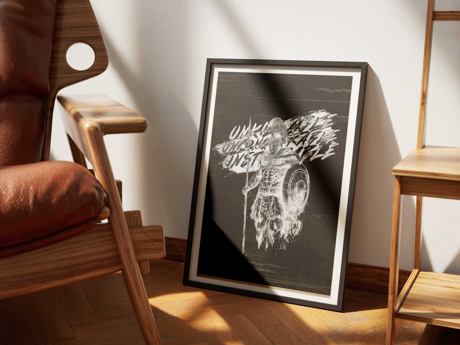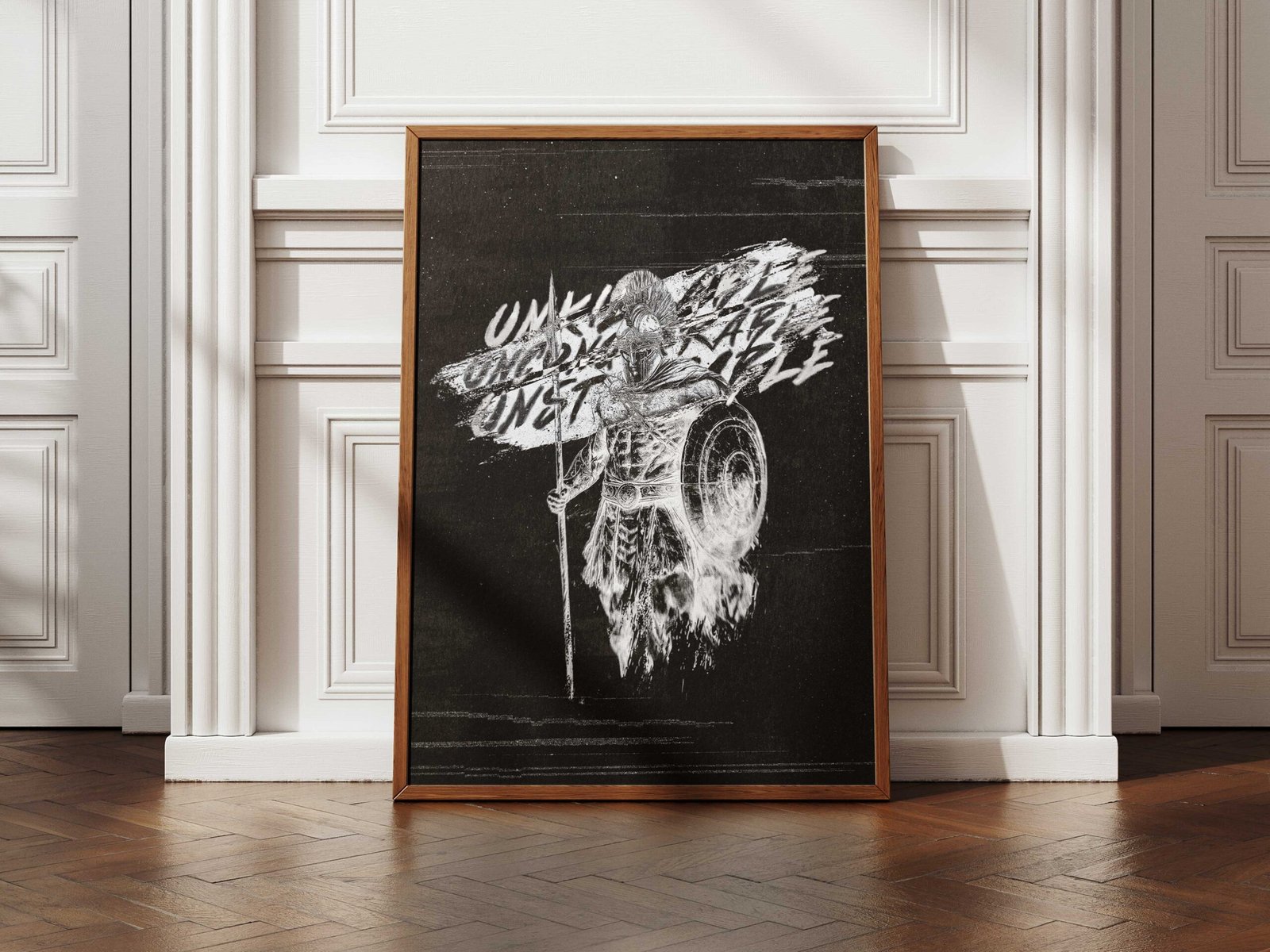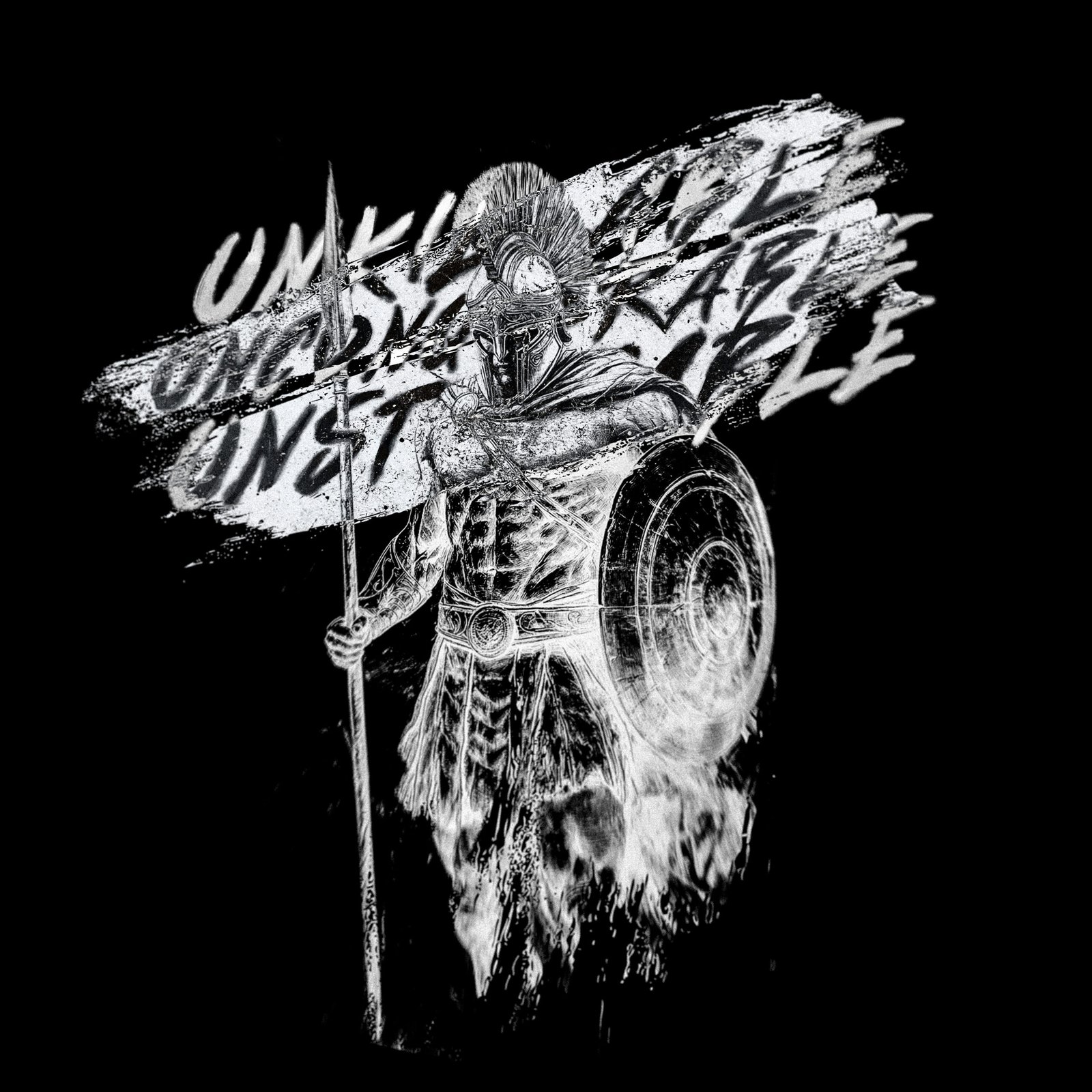 This Christian Spartan warrior digital print features a bold ink sketch in striking black and white, paired with the words Unkillable, Unconquerable, Unstoppable. Each word draws from Scripture:
